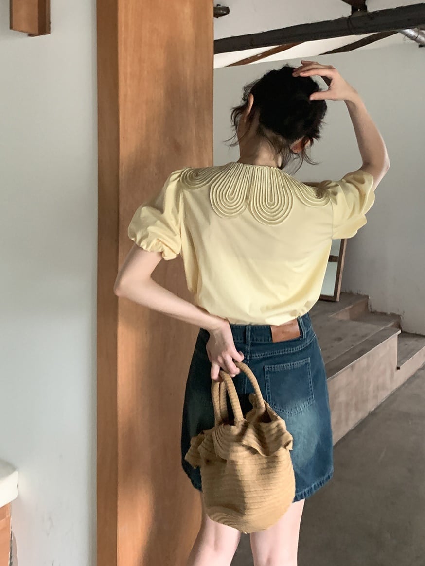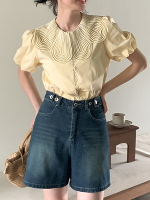 Puff sleeve lace collar blouse(パフスリーブレースカラーブラウス)b-929