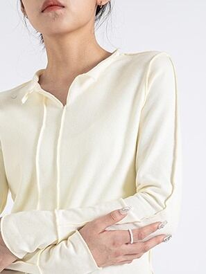 鎖骨が見える程度の開きすぎない上品な襟元で