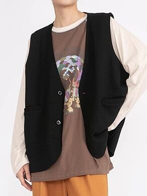 Over size no-collar gilet vest(オーバーサイズノーカラージレベスト)c-045