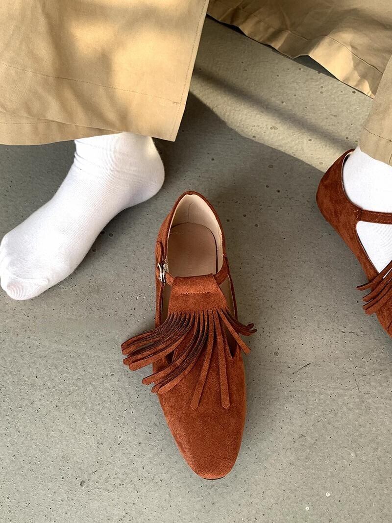 タッセルと靴自体は同じ色味なので主張しすぎず、