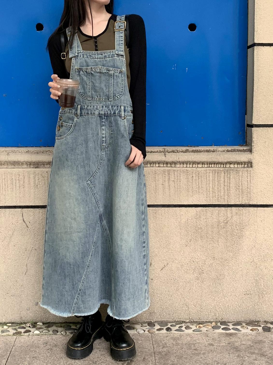 デニムサスペンダースカート。