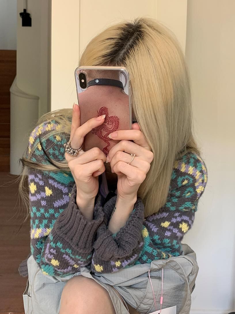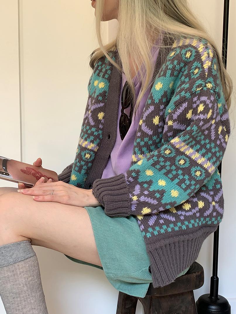 レトロなカラーニットカーディガン。
