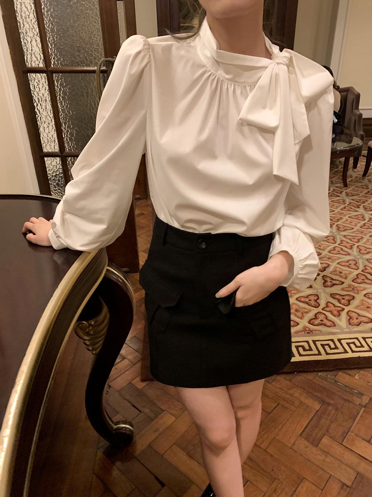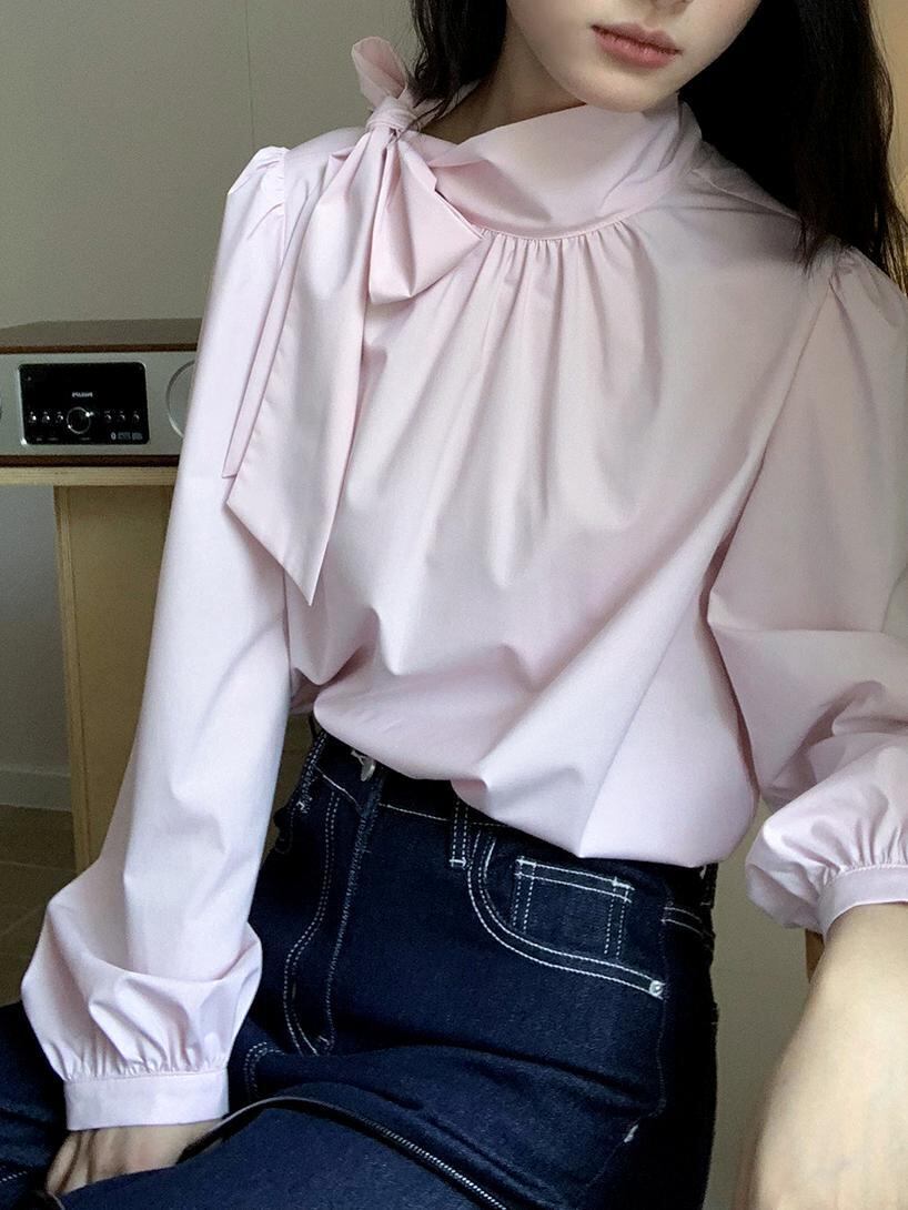 Puffsleeve ribbon shirt(パフスリーブリボンシャツ)c-555
