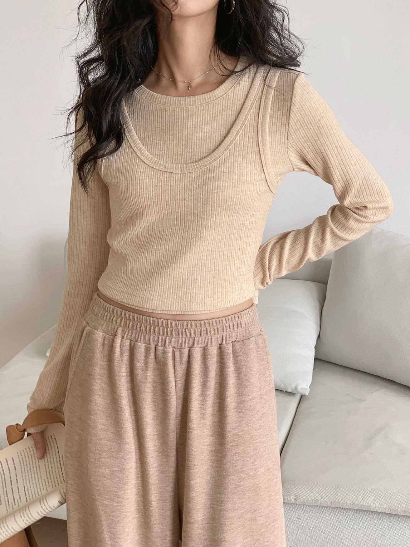 Layered design knit cutsew(レイヤードデザインニットカットソー)c-576